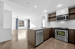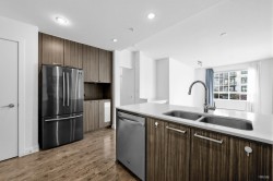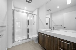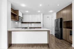 Welcome to this bright & modern 2-bed, 2-bath home in the heart of Coquitlam West in "The Georgia". This spacious, quiet inside unit offers 905 sq ft of efficient layout without any wasted space, features 9’ ceilings, bedrooms on opposite side, an open-concept layout, and a sleek kitchen with quartz countertops, integrated appliances, and ample storage. Spacious living & dining areas extend to a private balcony, perfect for relaxing or entertaining. The primary bedroom includes generous closet space and a full ensuite, complemented by a second bedroom ideal for guests or a home office. In-suite laundry and 1 parking included. Steps to SkyTrain, shopping, parks & recreation.