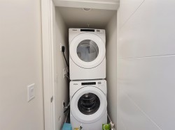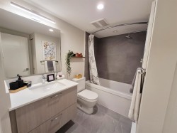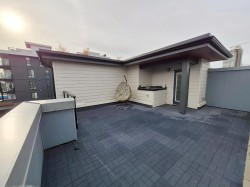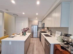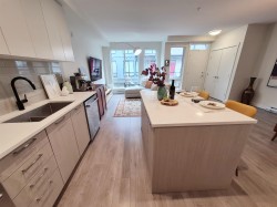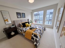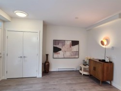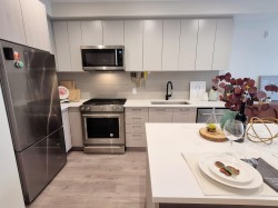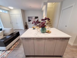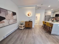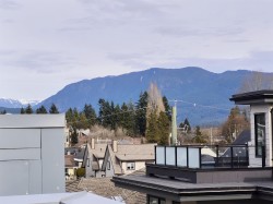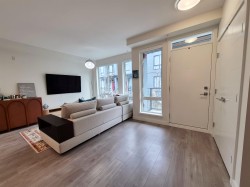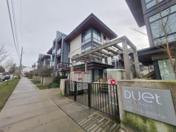 DUET 2 by ADERA. Radiant luxury meets modern design in this Like-new elegant 2-bedroom townhouse, crowned by a spectacular 400 sq ft+ private rooftop terrace with sweeping mountain views - a sun-filled retreat for elevated outdoor living and sophisticated entertaining. Center of Burquitlam, just steps to schools, SkyTrain, cafes, boutiques, and parks. Offering refined comfort and lasting quality. The open interior is framed by expansive windows with a lot of brightness and warmth, featuring quartz countertops, stainless steel appliances, and sleek contemporary flooring. Custom walk-in closet cabinetry and window coverings add a bespoke touch. 1 underground parking, TWO storage lockers, EV Ready. Near Schools: Miller Park Community School, Ecole Banting Middle School.