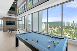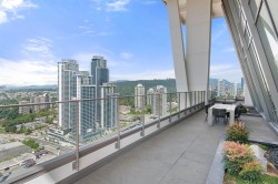 **EXQUISITE NEW 2-LEVEL 1220 sq ft Skyhomes! Stunning panoramic views of North Shore Mountains & Mount Baker! Luxurious features throughout! Modern kitchen: 2 Blomberg fridges, Miele wall oven & 5 burner gas cooktop, quartz counters, porcelain backsplash + ample storage. Sun-filled Master, walk-in closet & beautiful ensuite, 2nd bdrm, full bthrm + 2nd storey entry. Overheight ceilings, A/C, GLASS FOLDING WALL SYSTEM to terrace w/ gas hook up. Amenities: gym, pool, hot tub, sauna, outdoor BBQ & firepit. Penthouse: Zen garden, games rm, lounge, kitchen & dining, all with panoramic views! 2 parking, side-by-side, & 1 locker. Walk to Skytrain & Lougheed Town Centre.