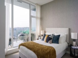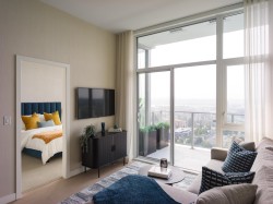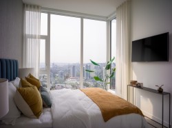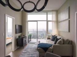 TOP Floor and incredibly EFFICIENT two bedroom floorplan with no wasted space at the recently completed Sydney by Ledingham McAllister. This functional layout offers separated bedroom locations and an open, square living and dining area. The FINAL south facing B plan offers expansive, bright southern exposure on the PENTHOUSE level of the building with phenomenal views to the city, water and beyond. Well equipped with full-sized, stainless steel appliances from Fisher & Paykel and KitchenAid while bathrooms are appointed with premium Kohler fixtures. Bright & spacious with overheight ceilings at 10' in the living areas, 9' at ceiling drops and a large outdoor balcony that extends the living space, this home proudly includes one secure underground parking and a private storage locker. DRPO.