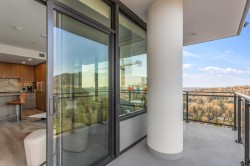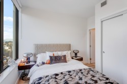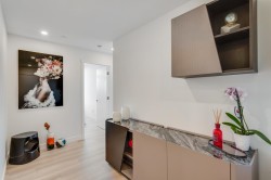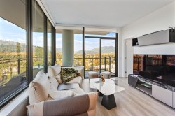 Beautifully updated 2 BED & DEN at the Alina in Coquitlam, offering an ideal location and stunning VIEWS. Professionally upgraded by A2H Design, it’s the ONLY suite with premium upgrades incl. designer lighting. Floor-to-ceiling windows frame unobstructed VIEWS of City and Mountains. The kitchen features mid-century inspired cabinetry, SS appliances incl. gas range. Enjoy a covered 220 SF wrap-around deck, split BED layout for privacy, and a DEN that can serve as a 3rd BED or office. The ensuite showcases a walk-in glass shower and modern finishes. Includes 2 Parking, Storage, access to a 6-level parkade, bike storage, EV charging, pool & hot tub. Steps to SkyTrain, shops, dining, parks and trails. BONUS: Furniture can be included with sale. Shown by appointment.