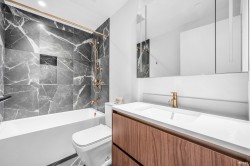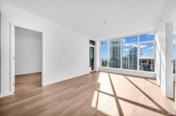 Luxury living with UNOBSTRUCTED VIEW at Smith & Farrow by Boffo in West Coquitlam. One block to BURQUITLAM STATION, minutes to SFU, restaurants, shopping, and parks. 27th floor 952 SF of interior space with 9’ ceilings, this 2 bed + flex home offers abundant natural light with SOUTH-FACING windows overlooking the Fraser River. Extra-large kitchen features full-size 30” integrated Fisher & Paykel / Bosch appliance package, brilliant storage solutions, and waterfall island with cabinetry drawers. All bedrooms include built-in wardrobe system and European wide-plank flooring. Entertain in the comfort of AC indoors or outside on the 132sqft covered balcony with gas outlet. Extensive amenities include concierge, outdoor pool, hot tub, rooftop indoor/outdoor lounge, gym, yoga studio and more!