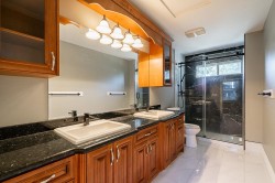 VIEWS, VIEWS, VIEWS! This stunning 9-bedroom, 7-bathroom, 8085sf sqft home in Westwood Plateau offers breathtaking city and mountain views. The main floor features soaring ceilings, an open kitchen with granite countertops, a spice kitchen, elegant finishes, a grand living and dining area, an office, and a bedroom with ensuite—perfect for guests or multigenerational living. Upstairs boasts 5 spacious bedrooms including an executive primary suite with a spa-inspired ensuite and private balcony. The basement includes a media room, wet bar, gym, recreation area, rough-in for a sauna, and a 2-bedroom + den legal suite for extra income or extended family. Enjoy the large back deck and panoramic views in one of Coquitlam’s most desirable neighbourhoods!