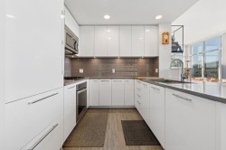 Welcome to Celadon at Windsor Gate by Polygon! This penthouse level, large floor plan 2 bed, 2 bath home features a bright open layout with high ceilings & separated bedrooms for privacy, a gourmet kitchen with gas range, quartz counters & integrated appliances, and a generous dining/living area that flows onto a huge panoramic view balcony; perfect for entertaining. The primary suite offers a walk-through closet and ensuite with double sinks and soaker tub. Residents enjoy exclusive access to the 18,000 sq. ft. Nakoma Club with pool, hot tub, gym, courts, theatre, and more. All within walking distance to Coquitlam Centre, SkyTrain, Lafarge Lake, Douglas College, and endless shops & restaurants. 2 side by side parking & 1 storage included. ** OPEN HOUSE SAT/SUN FEB 7th/8th 2-4PM **