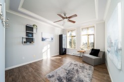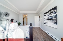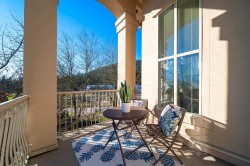 Bathed in light and graced with breathtaking Mt Baker views, this southeast, Top floor, corner home feels like a retreat in the sky. Soaring vaulted ceilings and dramatic oversized windows create an airy spacious feel, while the crown moldings and tri-ceilings add unique character. The primary bdrm has an ensuite with soaker tub and a private deck. Well separated large 2nd bdrm and a bonus den/office offer privacy and flexibility, while the open kitchen with SS appliances ,granite counters and a second covered deck provide effortless entertaining and beautiful sunrises. Set within a refined Westwood Plateau, pet-friendly community with nearby scenic trails, schools and bus system. Call your agent today for your private viewing!