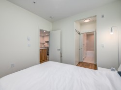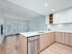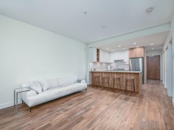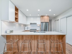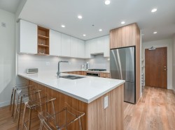 KIRA. East facing 3rd floor unit boasts urban 1 spacious bedroom and 1 den, 9' ceiling, pantry, kitchen with full size S/S appliances, lots of storage spaces in suite and engineered H/W throughout. Also, it has 1 parking with RI EV charging just next to the elevator and 1 storage locker. Gas for 5 burner stove and balcony bbq hookup is included in the strata fee. The building is constructed with noise guard technology reducing sound transfer floor to floor and has gym, meeting room, yoga room and roof top garden which is just next to 2 doors. Recently installed BLUE BOX for parcels such as AMAZON. Only a few minutes' walking distance from Burquitlam Skytrain Station, the shopping mall, YMCA and many more convenience. Well kept just like brand new.
