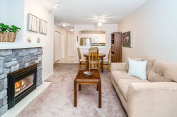 Experience serenity and city life in this lovingly maintained LARGE 1-bed sanctuary at The Kennedy. Bathed in natural light, the spacious open floor plan features a large kitchen with stainless steel appliances and an inviting eat-up bar that flows into a massive living and dining area. Cozy up by the gas fireplace or retreat to the oversized bedroom boasting ample closet space and a 4-piece bath. Step outside to your large private balcony or explore the lush trails just steps away. Unbeatable convenience defines this location, walk to Lafarge Lake, the Aquatic Centre, Coquitlam Centre, Douglas, and the SkyTrain for an effortless commute. With a gym this home is a show stopper! Plus 1 parking and a storage locker!