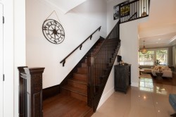 Executive 6-bed, 5-bath home with a 2-bed legal suite, offering stunning Mt. Baker views from the south-facing bedrooms and a private backyard backing onto a greenway with direct trail access. The spacious main level features an open-concept layout with a large island, generous storage, gas fireplace, and a family room leading to a peaceful covered outdoor sitting area. A separate wok kitchen adds convenience. Upstairs boasts four bedrooms, including two with ensuites; the primary offers an expansive greenway view, walk-in closet, soaker tub, and double shower. The lower level includes a well-laid-out suite ideal for income or extended family. Walking distance to schools, parks, and amenities, this modern home is perfectly designed for family living and an active outdoor lifestyle.