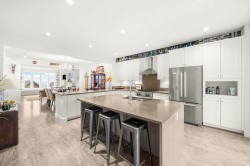 Beautifully maintained Burke Mountain home by Mosaic with lane access and valley views. Three-level Tudor-inspired design with over 3500 sq.ft., 5 beds and 4 baths. Main floor features 9' ceilings, an expansive chef-style kitchen with large quartz island, stainless appliances, and a spacious living area with room for office or play space. Walk-out patio off kitchen with mature landscaping. Upper level has a large primary suite with organized walk-in closet, valley outlook and spa-style ensuite. Lower level includes a high-end legal one-bed suite with potential to convert to two beds. Extra parking off rear lane suitable for larger vehicles. Steps to Coast Salish, transit and parks. New middle and high school coming 2026. Open House Saturday Nov 22 2-4pm.