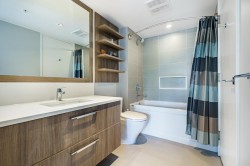 LOCATION! LOCATION! LOCATION! Walkable to everything, this 770 sqft 2-bedroom home at The Austin offers style, comfort, and convenience. Enjoy high-end finishings throughout with a spacious, open layout featuring floor-to-ceiling windows, a bright living room with access to a private patio, and a CHEF-INSPIRED kitchen with quartz counters, stainless steel appliances, double undermount sink, and breakfast bar seating for three. Two good-sized bedrooms are on opposite sides of the home, with a 4-piece cheater ensuite off the primary. Fantastic amenities include guest suites, lounge, gym/yoga room, children’s playground, and a large shared patio area. RARE BONUS: 2 side-by-side parking stalls + 1 storage locker. Rentals and pets allowed.