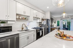 This fully renovated 3 bedroom, 3 bathroom townhome is perfect for growing families, offering a comfortable and functional layout with air conditioning throughout. The updated kitchen features a gas range and a convenient coffee station, while modernized bathrooms, roller blinds, and custom shelving add everyday ease. Enjoy family time outdoors with two decks, including a ground-level deck leading to a private fenced backyard. Garage includes overhead storage for all your family gear. Residents enjoy access to the Nakoma Club with an outdoor pool, fitness centre, Rec room,indoor basketball court,guest suite and more. A welcoming community you'll love to call home. 5 Minute drive to Coquitlam Centre,Skytrain,Aquatic Centre and Lafarge Lake. Call Today!