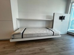 The MARQUEE at Lougheed Heights, built by Bosa! This open-concept 504 sq. ft. 1-bedroom suite features Bosch appliances, a gas range, 1 parking stall, and 1 storage locker. The innovative floor plan includes the SleepTHEATRE™, featuring a sliding TV wall mount with hideaway shelving and a fold-out bed for maximum functionality. Enjoy your spacious 114 sq. ft. private balcony, perfect for relaxing or entertaining. Premium amenities include an outdoor swimming pool, lounge, gym, BBQ area, community garden, and concierge service. Ideally located just minutes’ walk to Burquitlam SkyTrain, Safeway, and the YMCA, with easy access to SFU. One parking stall and storage locker included. Pet-friendly and rentals allowed.