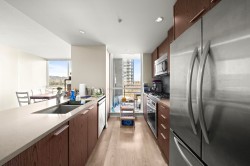 Bright and spacious 2 Bed / 2 Bath home at Grand Central 3 by Intergulf in the heart of Coquitlam Centre. Enjoy stunning mountain views and excellent natural light through floor-to-ceiling windows. Functional open-concept layout with high ceilings, engineered flooring, quartz countertops, and stainless steel appliances. Large kitchen window offers beautiful sunsets while you cook, and the covered balcony is perfect for morning coffee with mountain and city views. Resort-style amenities include an outdoor pool and hot tub, access to three gyms, yoga studio, clubhouse, rooftop garden with BBQ area, and playground. Unbeatable location steps to Lincoln SkyTrain, Coquitlam Centre Mall, Lafarge Lake, 1 parking stall and 1 locker included.
