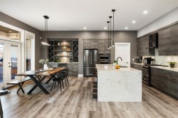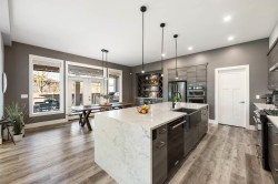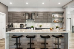 Sophisticated modern residence constructed in 2020, this home seamlessly blends high-end aesthetics w/ functional luxury, featuring an open-concept design that fills every room w/ light. The main floor is an entertainer's delight, offering a bespoke layout w/ a stunning kitchen & a private home office. This level flows seamlessly onto a spacious covered deck w/ built-in heaters & BBQ station, creating an idyllic setting for gracious indoor-outdoor living year-round. The upper floor offers 4 bedrooms, while the lower level includes a media room & a legal 2bedroom suite. The backyard is a private oasis, overlooking a low-maintenance turf yard. Highlights include built-ins throughout, A/C, EV, a generator & huge 3car garage. Perfectly located minutes from top-rated schools, Mundy + Como Lake.