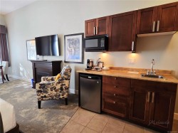 Experience West Coast charm and refined comfort in this luxurious main-floor corner suite at the Old House Hotel & Spa in Courtenay. This is a rare chance to own ALL 4 QUARTERS of the same unit - enjoy up to 3 weeks’ personal use monthly, with the rest earning income via professional hotel management. Vaulted ceilings and expansive windows create a bright, airy retreat, fully furnished with upscale finishes. Relax by the fireplace, prepare light meals in the petite kitchen, and unwind in the spa inspired bath with walk in shower and separate tub. Resort amenities include a heated pool, hot tub, Ohspa, fitness gym, EV charging, and lush grounds. Pet friendly, with underground parking and easy access to the riverway trail, shopping, dining, golf, beaches, Mt. Washington, and Comox Airport. This low maintenance getaway blends luxury, convenience, and revenue potential. Strata Fee: $591.40/month; Assoc. Fee: $872.68/month; GST applies; not for full time living.
