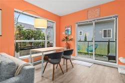 Welcome to Newport Village. This bright ground-floor corner home is filled with natural light, with large windows throughout. The open-concept kitchen features quartz countertops and overlooks the dining and living areas, creating a functional and inviting layout. Heated floors extend through both bathrooms and the laundry room, while the bathrooms are finished with quartz counters, undermount sinks, and glass shower doors. The primary bedroom offers a walk-through closet leading to a four-piece ensuite. Enjoy the convenience of entering and exiting the home through your private patio with its own gate, providing easy access to nearby walking trails—ideal for pet owners and outdoor enthusiasts. Conveniently located close to Walmart, Driftwood Mall, and the Courtenay Airpark and Millard Creek trail systems.