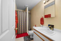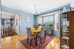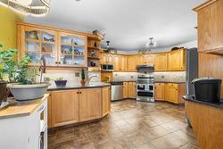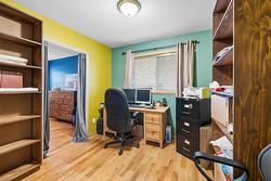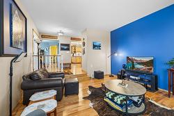 The main level features a well-appointed sunken living room with natural gas fireplace, a formal dining area, a spacious country kitchen with classic oak cabinetry, the master bedroom with full ensuite and a spare room being used as an office. Hardwood flooring runs throughout the main floor, adding warmth and character.