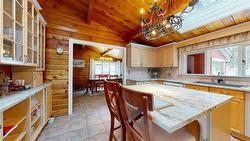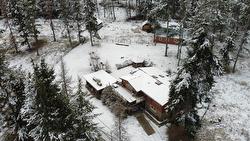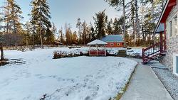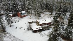 Equestrians please pay attention!! Nestled on a sprawling 5.66 acre lot, this beautiful Panabode home combines rustic charm with modern comforts. Featuring 5 spacious bedrooms and 2 bathroom, the home offers just over 1400sq.ft. on the main floor, complete with vaulted ceilings and skylights, Country kitchen has center island, ceramic tiled floors, tons of maple cabinetry and adjoins the dining room; perfect for entertaining. Spacious living room has striking river rock wall that frames a cozy gas fireplace and large windows to enjoy the beautiful mountain views. Upstairs you'll find three inviting bedrooms with a 5pc. bath complete with soaker tub and separate shower. Downstairs you'll be delighted by the spacious rooms, large windows allowing for loads of natural sunlight, laundry room, and mechanical room; all tastefully renovated approximately 2017. The basement has a separate entrance and is plumbed for a kitchen; possible suite potential. Outside, the property is equally impressive, boasting a 5 stall 29x30.5 barn with tack room, a hay shed, a barnwood 36x36 workshop/garage and a riding ring. There is also a 3 car carport with rooftop gardens above, large deck with hot tub and gazebo. Home has backup generator, water softener, reverse osmosis and new hot water tank (2024). Don't miss your chance to own this amazing property!