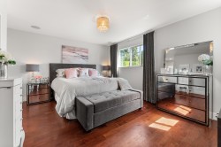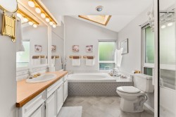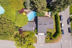 Experience award nominated luxury in this stunning 2,765sqft home, situated on a 10,743sqft corner lot! Masterfully renovated by Sarah Gallop Design and recognized with two Georgie Award nominations this home is designed for entertainers. The open concept layout features a show-stopping kitchen with JennAir appliances, double ovens, Statuario marble counters and a bold Brazilian black matrix island. The living room stuns with vaulted ceiling, Sapele wood cabinetry, maple h/w floors and gas fireplaces. Enjoy Control4 automation throughout, lights, blinds, TV and music at your command. Relax and enjoy sunsets on the west-facing sundeck with views of the Georgia Strait, or in your private backyard oasis with a heated pool, hot tub and lush landscaping. A true gem, come and see it today!