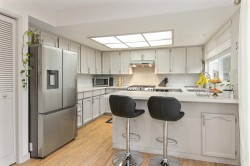 Beautifully updated North Delta home just blocks from Cougar Elementary & Seaquam Secondary, with Wade Road Park, trails, tennis, golf, and Scottsdale Shopping Centre nearby. Easy access to Hwy 91/17 and public transit 5-6 min walk. Renovated with modern kitchen & flooring (2019), new windows w/ lifetime service guarantee (2022), new roof 30-yr warranty (2023), and new doors & closets (2025). Forced-air natural gas system ready for central AC upgrade. Projector wiring installed in living room for future home theatre. Move-in-ready with pride of ownership throughout.