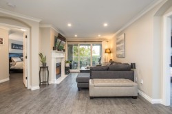 Westham Lane is one of Ladner’s most sought-after buildings, known for its prime location, lifestyle convenience, and exceptional upkeep. This contemporary 2-bed, 2-bath home features a smart split-bedroom layout and was refreshed in 2018 with vinyl plank floors, crown moulding, updated lighting and paint throughout. The spacious kitchen offers quartz counters, new hardware, and updated appliance package. Enjoy a spacious living area with cozy gas fireplace and walk-out covered patio. Washer/dryer 2025. Recent building upgrades: balconies (2020), sloped roof (2022), and boiler (2023). Amenities include a large party room with kitchen and gym with new equipment. 2 parking + storage. 2 pets allowed (dogs to 16” at shoulder). Ladner Elem and DSS. Steps to Ladner Centre.