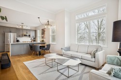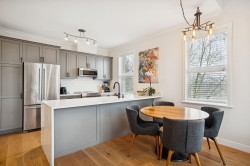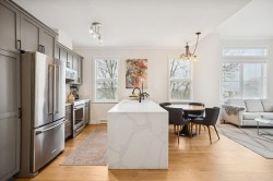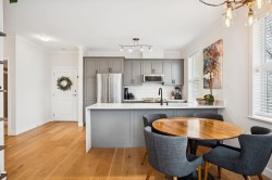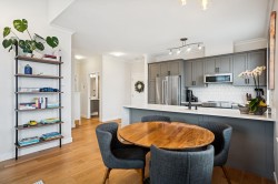 Show-stopper updated penthouse corner residence at the ever popular Fairview 56 building in upper Beach Grove Tsawwassen. With 11 ft ceilings & flooded with light, this floor plan incl’s 2 bed & 2 bath with 1024 sq ft of polished living space. Updates incl. renovated kitchen featuring brand new S/S appliances, cabinetry & a striking waterfall countertop, new white oak engineered hardwood flooring & paint throughout, new baseboard heaters w/smart thermostats along with new bathroom vanities, counters, sink & faucets plus new washer/dryer…the list goes on! West facing balcony with south west corner views of everything Tsawwassen has to offer and within steps to shopping, recreation, coffee shops & transit. Pet friendly building that incl’s 1 parking & 1 storage. Turn key & shows like new!