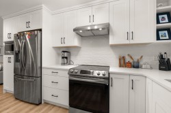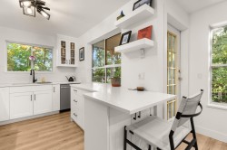 Beautifully RENOVATED corner unit at Sunningdale in the heart of Ladner! This bright & spacious 2 bed 2 bath 1051 sq ft suite features NEW kitchen, baths, paint, lighting & warm vinyl plank flooring throughout! Chef's kitchen boasts new appliances, cabinets & counters.Great open plan with dining area overlooking living rm with stylish gas feature fireplace & door to private deck! Bedrooms are separated by living space for privacy.Primary bdrm is spacious with spa inspired ensuite with tub - 2nd bdrm is roomy & has updated full bath adjacent.In suite laundry room has full sized washer & dryer & storage.Fees include secure underground parking, storage locker, gas & hot water - 1 pet OK (dog or cat).Walk to quaint Ladner village, parks, recreation, schools & transit.*OPEN SUN JAN 25 (2-4 PM)*
