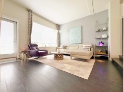 This rare 2-bedroom townhome offers the space and flexibility of a 3-bedroom layout, with nearly 1,400 sq.ft. of thoughtfully designed living space. The open-concept main floor is ideal for entertaining, featuring a large island kitchen with Caesarstone countertops, stainless steel appliances, double sinks, and sleek cabinetry. A sunken living room with soaring ceilings opens to a spacious sundeck overlooking the lush golf course. Upstairs, the king-sized primary suite boasts a walk-in shower with bench, double sinks, and stone counters. The oversized second bedroom offers potential to be divided into a third room. Recently updated with $18,000 in tasteful upgrades, including new entry floor tiles, laminate stairs, and designer wallpaper. Meticulously maintained and truly move-in ready.