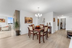 Stunningly renovated 2 bed + Den, 2 bath at Chancellor Tower! This rare 1,308 sq. ft. corner home was fully updated just 4 years ago with a modern kitchen, new flooring, fresh paint, and redesigned living spaces that feel brand new. The bright, spacious layout includes a generous living/dining area, large bedrooms, a versatile den for storage, in-suite laundry, and a 121 sq. ft. balcony. Chancellor Tower offers landscaped gardens, indoor pool, gym, billiards room, and on-site caretaker. Steps to shopping, dining, and transit, this home combines comfort, style, and unbeatable convenience. Unit comes with 1 parking & 1 storage. Book your showings today!