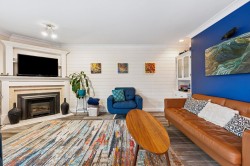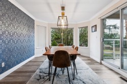 Welcome to Sunbury Terrace – This spacious, family-friendly 4-bedroom, 2.5-bathroom townhome offers 2,058 SF of living space. Nestled in a boutique bareland strata community of just 12 units, this property is designed like a half-duplex for maximum privacy. Recent updates include a chic kitchen, refreshed bathrooms, & laminate flooring throughout the main level. Step outside to the expansive balconies on both the main & upper levels, where you can take in breathtaking views of the Alex Fraser Bridge + surrounding mountains. Additionally, the unit features a private yard backing onto Sunbury Park. Other highlights include a double side-by-side garage + room for 4 more vehicles on the oversized driveway- perfect for your RV or boat. This home is the ideal choice for families seeking comfort!