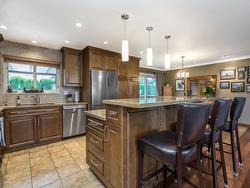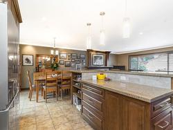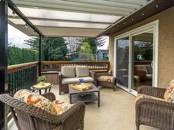 Beautiful & well-maintained home on quiet st. in Annieville. Spotless 4-bedroom, 2.5 bath home features spacious renovated kitchen with island bar, cabinetry with pullouts & updated appliances. Maple Hardwood flooring on main, gas fireplace, 3 bedrooms & sliding patio doors to 29'*10'4 covered deck, ideal for entertaining with family and friends. The basement features a huge living area and, a cozy bedroom with French doors looking out to a parklike, private backyard. Fabulous outdoor BAR/ kitchen area, completely covered & enclosed, ideal for large family parties. Wet bar has extensive cabinetry, bar fridge (gas hookup available). Other upgrades inc. roof (2011), furnace (2020), Hot water tank (2024), fence (2023) new deck railings & large storage rm.(Listing on Hold)