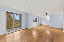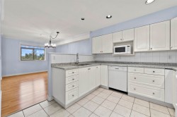 Priced almost $200,000 below its assessed value of $889,000, this exquisite 2-bedroom plus den condominium—spanning a generous 1,386 square feet—presents breathtaking vistas of the prestigious Beach Grove Golf Course. The functional kitchen and elegant dining room flow seamlessly into the living area, which opens onto a private deck offering serene golf course panoramas. The primary suite features a luxurious 5-piece ensuite with a deep soaker tub, glass-enclosed shower, and dual vanities. The second bedroom enjoys its own secluded deck, complemented by a full bath just steps away. The versatile den is ideally suited as a home office or personal fitness retreat. Nestled on a tranquil street in a meticulously maintained complex. 1 parking & 1 locker included.