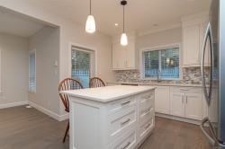 Welcome to 5607 Capstone Place, an elegant home backing onto a forested area with access to Cowichan Valley walking/biking trails. Enjoy a balance of nature and convenience just minutes from schools, shopping, recreation, and amenities. The main floor features a modern kitchen with quartz counters, soft-close cabinetry, SS appliances, an induction stove, and a large island for entertaining. Laminate flooring, 9’ ceilings, large windows with 2” blinds, and a gas fireplace create a bright living space. A main-floor bedroom offers flexibility as a guest room or office, alongside a 2-piece bath and extra storage. Marble tile accents enhance the bathrooms, mud room, and laundry room, while the kitchen opens to private patio garden. Upstairs, the primary bedroom includes a walk-in closet and en-suite, plus two additional bedrooms, a 5-piece main bath, and laundry room with sink and washer/dryer. Additional features include a heat pump, irrigation system, garage, and roughed-in central vac.