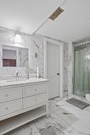 The home includes two kitchens—one on each level—providing excellent flexibility for larger families, guest accommodations, or staff housing. Bright living spaces and large windows take in peaceful views across the surrounding farmland and mountain backdrop.