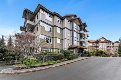 Meticulously updated, this 2 bed, 2 bath plus den on the quiet side of the building backs on to the Gorge Vale golf course. Light from the southeast flows through a bank of windows into the open concept living/dining/kitchen areas. High ceilings increase the sense of space. The primary bedroom includes a large walk-through closet plus private 4pc ensuite with soaker tub and walk-in shower. Updates in 2024/2025 include new paint, solid surface countertops, sinks and faucets throughout as well as all 6 new appliances plus a new water heater. Easy access to town via car, bike, bus, or a short walk to the Gorge Waterway. Pets welcome, one dog or one cat, with no size restrictions.