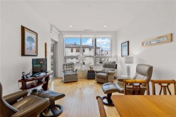 Welcome to Westbay Quay, a modern steel & concrete building in the heart of Esquimalt’s vibrant waterfront community. This bright & thoughtfully designed 1 bdrm condo offers an efficient open-concept layout w/hardwood floors, oversized windows,& seamless flow between living, dining,& kitchen areas. The contemporary kitchen is beautifully finished w/quartz countertops, sleek cabinetry, & a premium Fisher Paykel/Blomberg appliance package including gas cooktop, built-in oven, integrated refrigerator & dishwasher, ideal for both everyday living & entertaining. The bedroom offers generous closet space & direct access to a private deck, while the modern 4-piece bathroom features clean lines & quality finishes. Extra's include in-suite laundry, A/C, secure underground parking & storage locker, bike/kayak storage & professionally managed strata. This immaculate home offers an exceptional blend of lifestyle, quality & convenience.