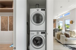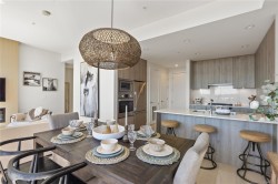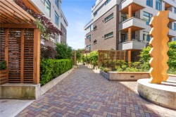 Sub Penthouse in Esquimalt Town Square! A charming and vibrant community offering the perfect blend of modern living and walkable amenities. This 1 bedroom plus den, luxury condo, offers oversized picture windows with mountain, city and ocean views from the 217 sq ft balcony! 9'7" ceilings, reclaimed brick feature wall, and modern electric fireplace. Oak flooring and Oak shelving in living room, closets and den/office. Bosch oven, gas range (gas included in strata fee), Fisher Paykel fridge, and custom cabinetry. Spacious bath with soaker tub and geothermal heated flooring. Gas BBQ hookup. Secure underground parking spot with EV charger. Live right beside the public library, ERC coffee, Saxe Point Pub, Esquimalt Rec Center with lap lanes, sauna, hot tub & steam room, 2 grocery stores within 5 minutes & Saxe Point just a walk away. Exceptionally maintained building! Low strata fees. Call now to book your viewing!
