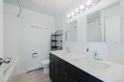 Located in family friendly Esquimalt, close to schools, parks, shopping, the Songhees walkway and the E&N Trail is this 3 bed 2 bath half duplex with bonus 1 bedroom 1 bathroom mortgage helper! Upstairs you'll find a spacious open concept kitchen, dining and living room with gas fireplace and massive outdoor deck, along with 2 large bedrooms, 5 piece bathroom and laundry. Downstairs is a 3rd bedroom, office nook and new 5 piece bath. With its own entrance is a separately metered 1 bedroom 1 bathroom suite with extra sound proofing, gas fireplace and its own laundry. Extensive updates include: roof, gutters, deck, windows, flooring, kitchen appliances, all bathrooms, suite, hot water on demand, electrical, and gas fireplaces. With a fully fenced south facing backyard ideal for pets, children and gardening and plenty of off street parking, this home offers the perfect opportunity to affordably make Esquimalt your family's next destination. Book your private showing today!