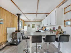 BOAT ACCESS ONLY. Banks will not finance leasehold recreation properties. Escape to your dream lakeside retreat with this 3-bedroom, 1.5-bathroom cottage spanning 980 square feet. Enjoy breathtaking panoramic west views from every corner, complemented by unforgettable sunsets. Nestled waterfront, this leasehold property is accessible by a 15-minute scenic boat ride from the marinas. The spacious low bank, flat yard opens to a beautiful beach (one of the best in Cascade Bay) and big beach deck for relaxation. Solar power and hot water on demand, this turn-key property includes all furniture for your convenience. Minutes away from Rainbow Falls, it's the perfect sanctuary for peace and tranquility.