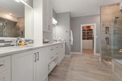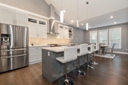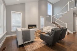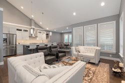 Welcome to this stunning, meticulously maintained, custom-built 4242 square foot home, offering an exceptional blend of luxury & comfort. This two-storey residence features a chef's kitchen adorned with beautiful cabinetry and elegant quartz countertops,large island, separate spice kitchen and dining area. The spacious living room boasts a floor to ceiling tiled fireplace. Huge primary bdrm on the main floor with massive ensuite and W/I closet. Office & laundry on the main. Two generous bedrooms on the upper level, plus den/sitting area and a TV room/games room ideal for family entertainment. Enjoy low-maintenance landscaping with a fully fenced yard, patios and decks, located in the desirable Kawkawa Lake area-only minutes from the lake.
