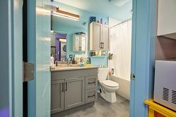 Additional features of the condo include two storage closets, in-suite laundry, air conditioning, window coverings, and one surface parking stall. The 4-piece bathroom is finished with clean, modern details, completing the home’s polished and eclectic look.