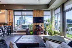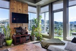 Welcome to elevated urban living in one of Kelowna’s most sought-after concrete high-rises. This bright and airy open-concept condo features soaring 11-foot ceilings and floor-to-ceiling windows that showcase panoramic city, mountain, and peek-a-boo views of the lake. Located on the quiet side of the building, the unique northeast exposure offers both morning sunrises and evening light. The interior blends modern style with industrial character, highlighted by exposed concrete and structural pillars that create a bold architectural statement. Thoughtful touches include a Murphy-Bed and workspace in the Den/Office area, a fitness room, secure bike storage, a storage locker, and one of the most desirable underground parking stalls in the building. Situated in the heart of Kelowna’s vibrant Cultural District, you’re steps to the waterfront, parks, dining, shopping, entertainment, and more. A rare opportunity to enjoy urban sophistication with nature and lifestyle at your doorstep. Don't miss out on your opportunity to own this amazing condo!