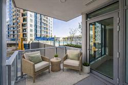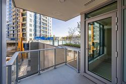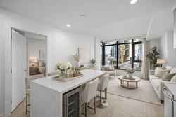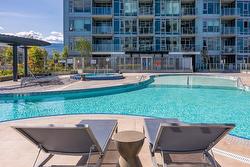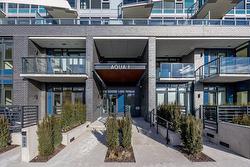 Experience lakefront living reimagined at Aqua Waterfront Village. Located on the 5th floor, just steps from the pool deck, Unit #512 is a Jr. 2-bed, 2-bath home offering approximately 725 sq. ft. of refined interior space & a 90 sq. ft. balcony with Northwest views. This bright and airy home features a split-bedroom layout ideal for privacy and flexibility. Carefully selected finishes throughout, from the luxury vinyl plank flooring and oversized windows to a modern kitchen complete with quartz countertops, under-cabinet lighting, stainless steel appliances, a wine fridge and a concealed hood fan. The bathrooms include natural stone-inspired porcelain tile, wood-tone vanities, a deep soaker tub or a walk-in shower. Enjoy contemporary roller shades, in-suite laundry, & a quiet, energy-efficient heating & cooling system. Residents have exclusive access to Aqua’s exceptional amenities, including a resort-style pool & hot tub, indoor-outdoor social lounge, fireside lounge and coworking hub, two level fitness center as well as membership opportunities to the Aqua Boat Club. 1 parking stall, 1 extra large storage locker & 1 bike storage locker included. Vacant & ready for quick possession. Only a 5% deposit required. Buyer to verify all details & measurements if deemed important. All offers must be written on the Developer’s CPS.