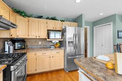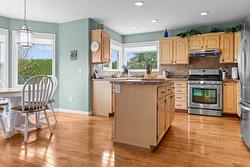 Located at the end of a quiet cul-de-sac in one of Kelowna’s most desirable Lower Mission neighbourhoods, this beautifully maintained two storey home sits on an oversized, flat 0.22-acre lot and reflects decades of pride of ownership. Just a short walk to Okanagan Lake and nearby beaches, and close to the H2O Adventure + Fitness Centre, Capital News Centre, shopping, coffee shops, the Pandosy district, and Okanagan College. The home offers approximately 2,300 square feet of warm, inviting living space, featuring hardwood flooring throughout the main level and staircase, with vinyl flooring in the bathrooms. The bright kitchen opens to the dining area and overlooks the backyard, while the adjoining family room is anchored by a cozy gas fireplace, creating a welcoming space ideal for entertaining or keeping an eye on children while cooking. Large sliding doors connect the living space to the patio for easy indoor-outdoor flow. Upstairs, the bedroom layout includes a generous primary bedroom with ensuite and walk-in closet, offering comfort and functionality for a variety of lifestyles. The backyard is expansive and private, framed by mature cedar hedging and landscaped grounds, with a seven-zone underground irrigation system. The yard is fenced around the perimeter while remaining open where it meets the home. Additional features include a 16 x 10 electric awning, an 8 x 10 storage shed, double car garage, and a hot water tank replaced roughly three years ago.
