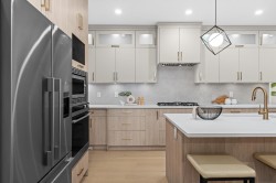 Luxury living in the historic Port Guichion neighbourhood. This 3000+ sqft residence is custom built by the reputable team at Marquis Custom Homes, offering the perfect blend of modern design, style & functionality. Enjoy the generous great room with walk out access to the covered outdoor fire lounge + BBQ area. The Chef’s kitchen features premium appliances, alongside a prep kitchen - the ultimate space to host friends & family. The second level primary bedroom is grande with vaulted ceilings, a walk in closet & spa-inspired ensuite. 2 additional bedrooms are situated nearby. The third level offers a flexible recreation room with bar & full bathroom. Easy access to schools, shopping, dining, golf, highway, ferries / US border & more! Bonus: a legal 1 bedroom suite w/ kitchen & laundry.