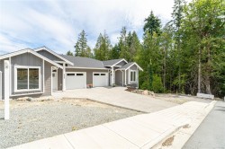 This half duplex home features impressive amenities, a rare 1 bed legal suite and zero strata fees. Enjoy ocean & forest views from the living room, kitchen, primary bedroom, and back deck. The kitchen offers elegant white cabinetry with soft-close drawers/ doors, under-cabinet lighting, & luxurious quartz countertops & backsplash. A tray ceiling in the living room enhances the spacious feel, complemented by durable laminate flooring and stylish tile in the bathrooms. Additional highlights include 9’ ceilings, an on-demand hot water system, and a natural gas furnace with air conditioning roughed in, plus a natural gas barbecue r/i connection on the patio. The legal 1 bed suite has convenient level entry, its own electric hot water tank, and baseboard heating. Built by an established builder, this home comes with a 10-yr warranty and showcases craftsmanship. Measurements are approximate so please verify if important. Don’t miss the chance to experience this remarkable half duplex!