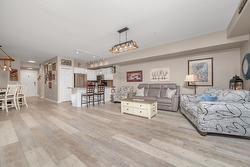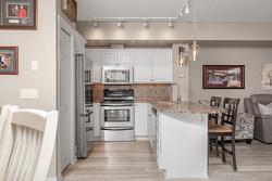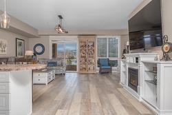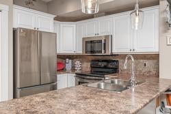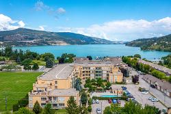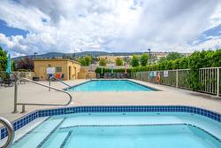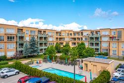 The open-concept layout features 9’ ceilings and floor-to-ceiling windows, flooding the space with natural light. The generous primary bedroom easily accommodates a king-size bed and includes a walk-in closet with custom built-ins and a full ensuite. The second bedroom is equally spacious with a double closet and built-ins—perfect for guests or a home office. The kitchen boasts stainless steel appliances, including a new over-the-range microwave/convection oven, providing the convenience of two ovens for entertaining. Rigid engineered luxury vinyl plank flooring (2021), an electric fireplace with built-ins and under-cabinet lighting, and extensive closet organizers throughout. Additional highlights include: Geothermal heating and central air conditioning with a new heat pump (2021)/Large laundry/utility room with new stackable washer & dryer (2023)/New hot water tank (2024) and new refrigerator (2023)/ . Enjoy the heated outdoor pool and hot tub, exercise room, dry sauna, and a social room with a full kitchen and large patio, ideal for gatherings. With no age restrictions, pet-friendly policies, and proximity to the airport, UBCO, and shopping ,this one has it all!