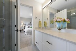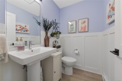 Like new 2021 built 2 level one at Southpoint Ridge with commanding views of the surrounding area including Mount Baker and the Olympic Mountains in the distance. This designer 3 bedroom 3 bath home features gourmet kitchen with quartz counters, tile backsplash, under cabinet lighting and premium stainless steel appliances including gas for range, BBQ outlet and on-demand hot water system. Living room electric fireplace for ambiance and warmth plus high efficiency ductless heat pumps on both levels for heating and cooling. Garage and lovely fenced patio area for outdoor enjoyment and front row seats for views. This home has been impeccably kept and is in move-in condition.