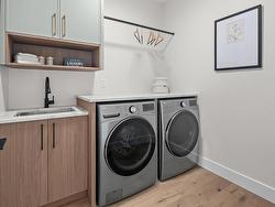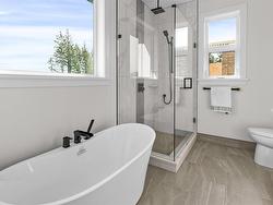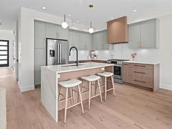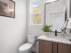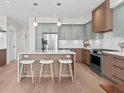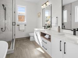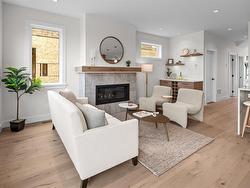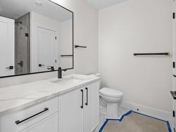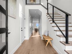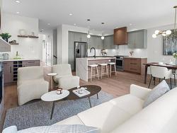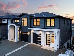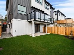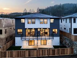 Luxury duplex living with no strata fee! CODA Homes presents this BuiltGreen Platinum rated 4-bedroom, 4-bathroom Bear Mountain home with a 1 bedroom in-law suite. The main floor offers open-concept living, including a gorgeous kitchen with a large island, walk-in pantry, & Bosch appliances. The dining room opens onto the sunny balcony, and the comfortable living room offers a gas fireplace & bar area. Upstairs, you'll enjoy 3 large bedrooms, including a primary with a walk-in closet, & breathtaking ensuite! The walk-out lower level includes a family room with patio and fenced yard, plus a private one bedroom in-law suite with separate entrance. Features include engineered hardwood floors, quartz counters, a high-efficiency ducted heat pump, a fenced & landscaped yard, & no strata fees! Enjoy easy access to the highway, just 5 mins from Costco, shops, restaurants & golf.
