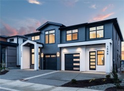 Luxury duplex living with no strata fee! CODA Homes presents this BuiltGreen Platinum rated Bear Mountain home with a 1 bedroom in-law suite. The main floor offers open-concept living, including a gorgeous kitchen with a large island, walk-in pantry, & Bosch appliances. The dining room opens onto the sunny balcony, and the comfortable living room offers a gas fireplace & bar area. Upstairs, you'll enjoy 3 large bedrooms, including a primary with a walk-in closet, & breathtaking ensuite. The walk-out lower level includes a family room with patio and fenced yard, plus a private one bedroom in-law suite with separate entrance, laundry, and quartz counters. Features include engineered hardwood floors, quartz counters, a high-efficiency ducted heat pump, a fenced & landscaped yard, & no strata fees! Enjoy easy access to the highway, just 5 mins from Costco, shops, restaurants & golf.